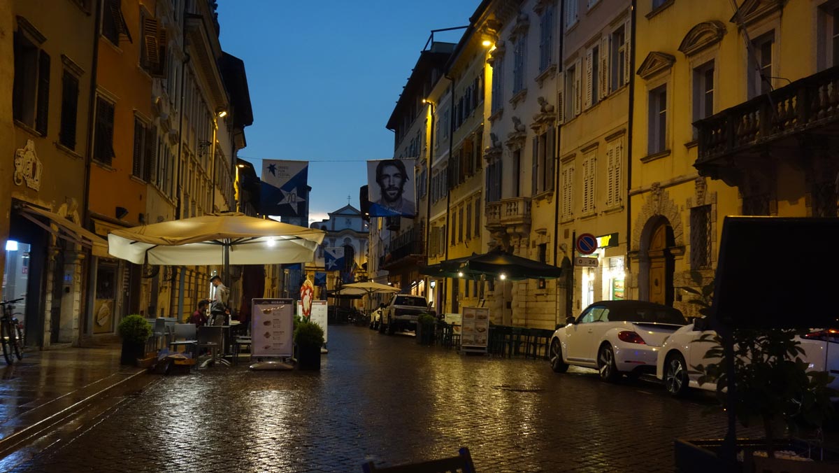 Gewitter in Trento am Domplatz: wir saßen unter einem großen Schirm