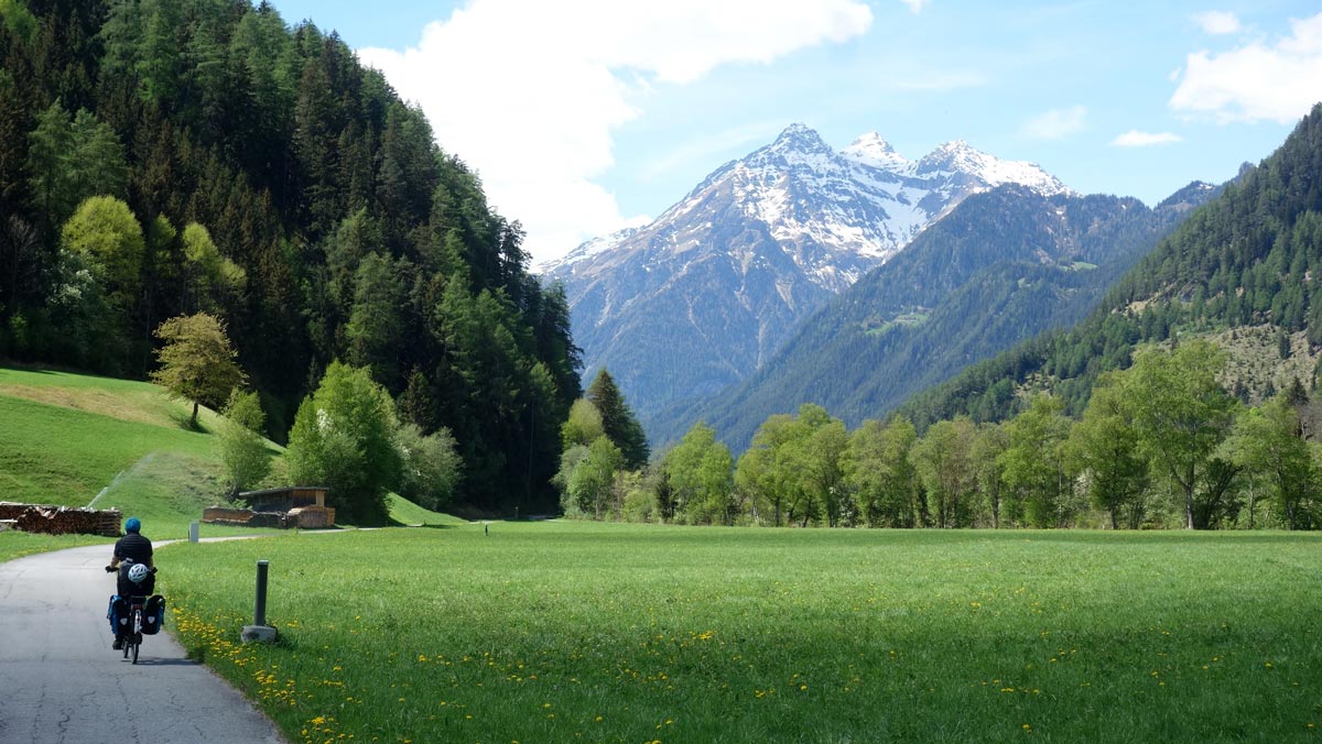 endlos lang bergab, mit Blick auf das Ortlermassiv
