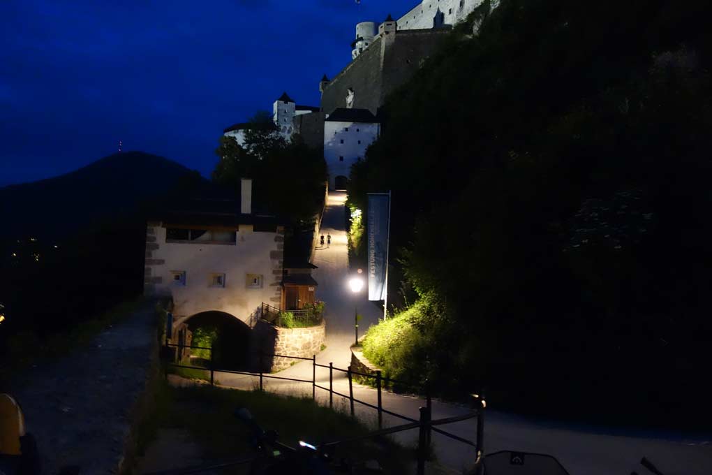 Salzburg: der Aufstieg zur Festung bei Nacht