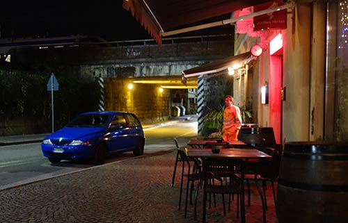 In Padua in einem Studentenlokal durften wir in der Küche essen: Nicht ganz so vornehm, aber lecker und ohne laute Musik.