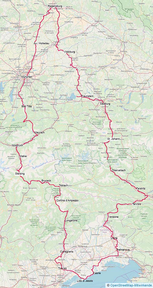 Wir folgten auf der Hinfahrt weitgehend dem München-Venezia - Radweg.